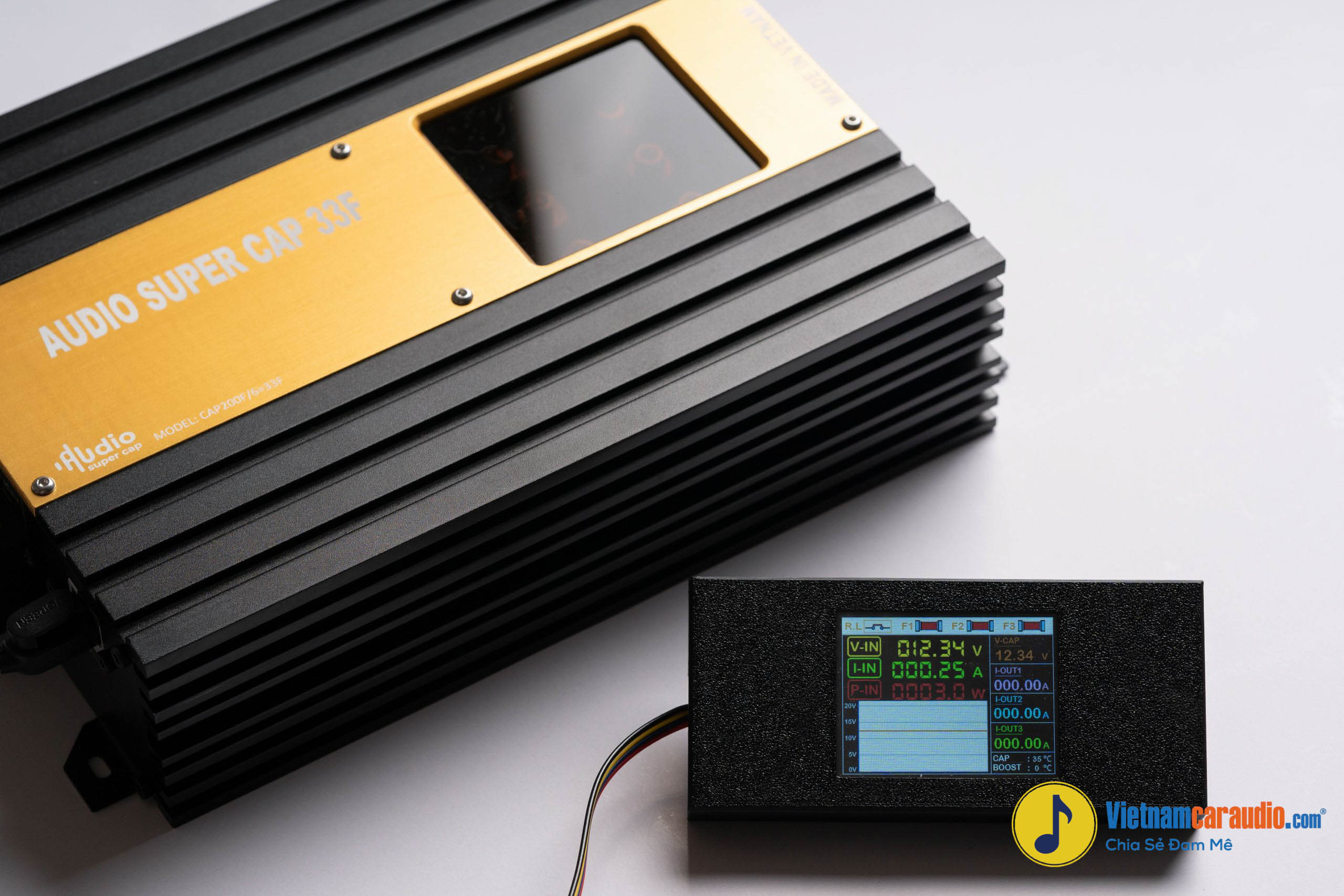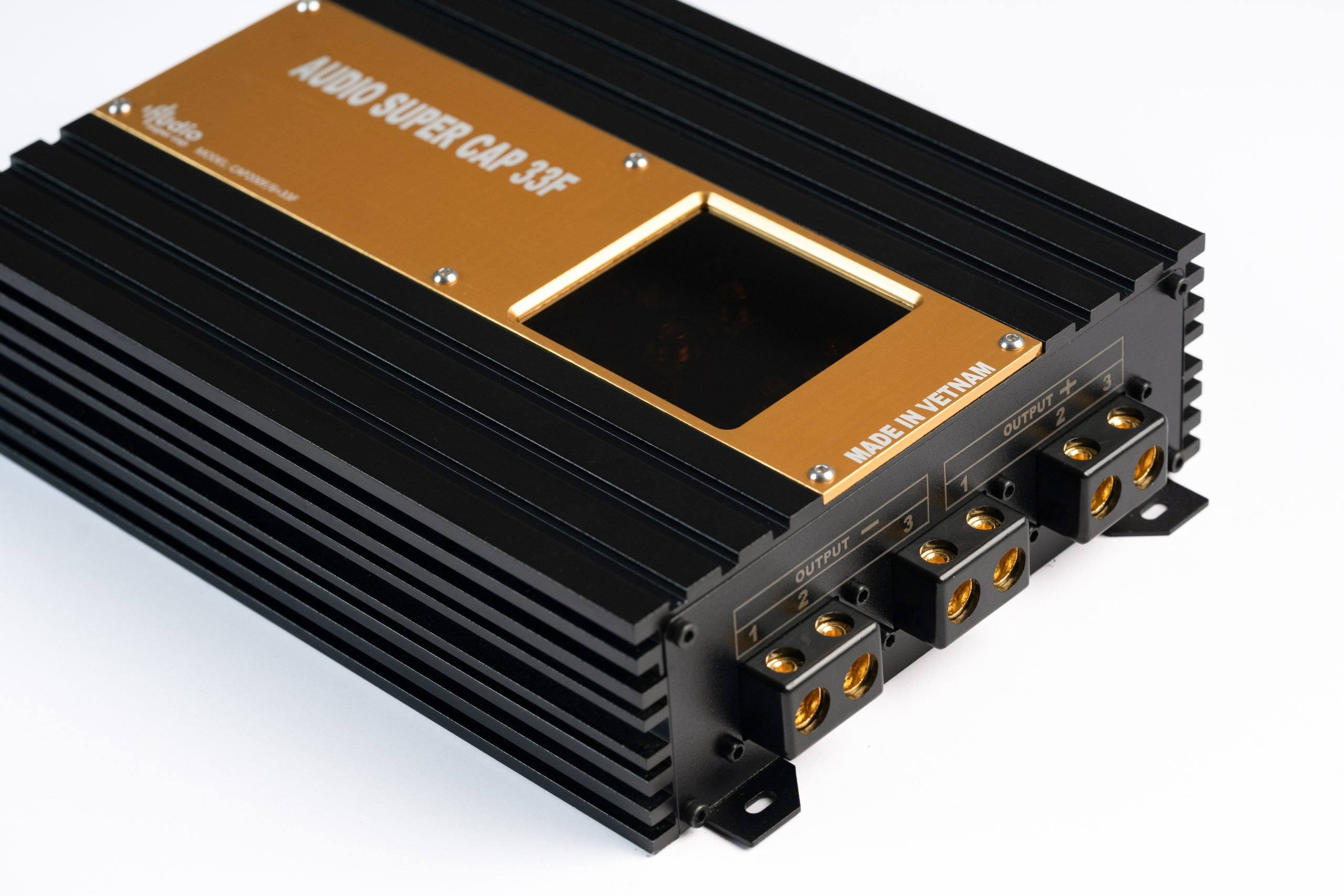 Sản xuất tại Việt Nam, CAP200F/6=33F là thế hệ siêu tụ bù ổn áp được thiết kế chuyên biệt cho hệ thống âm thanh ô tô công suất lớn.
